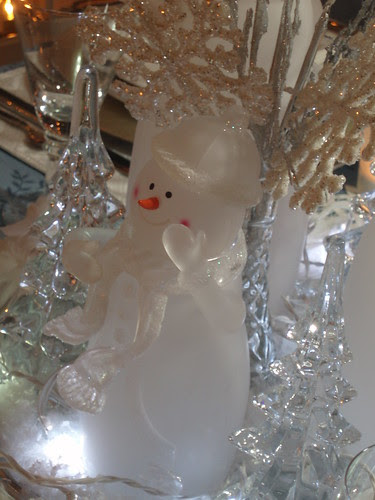 2. The glass snowmen in the centerpiece are wonderful. I like using mirrors on the table to set things on. Looks like ice! The whole table is gorgeous.